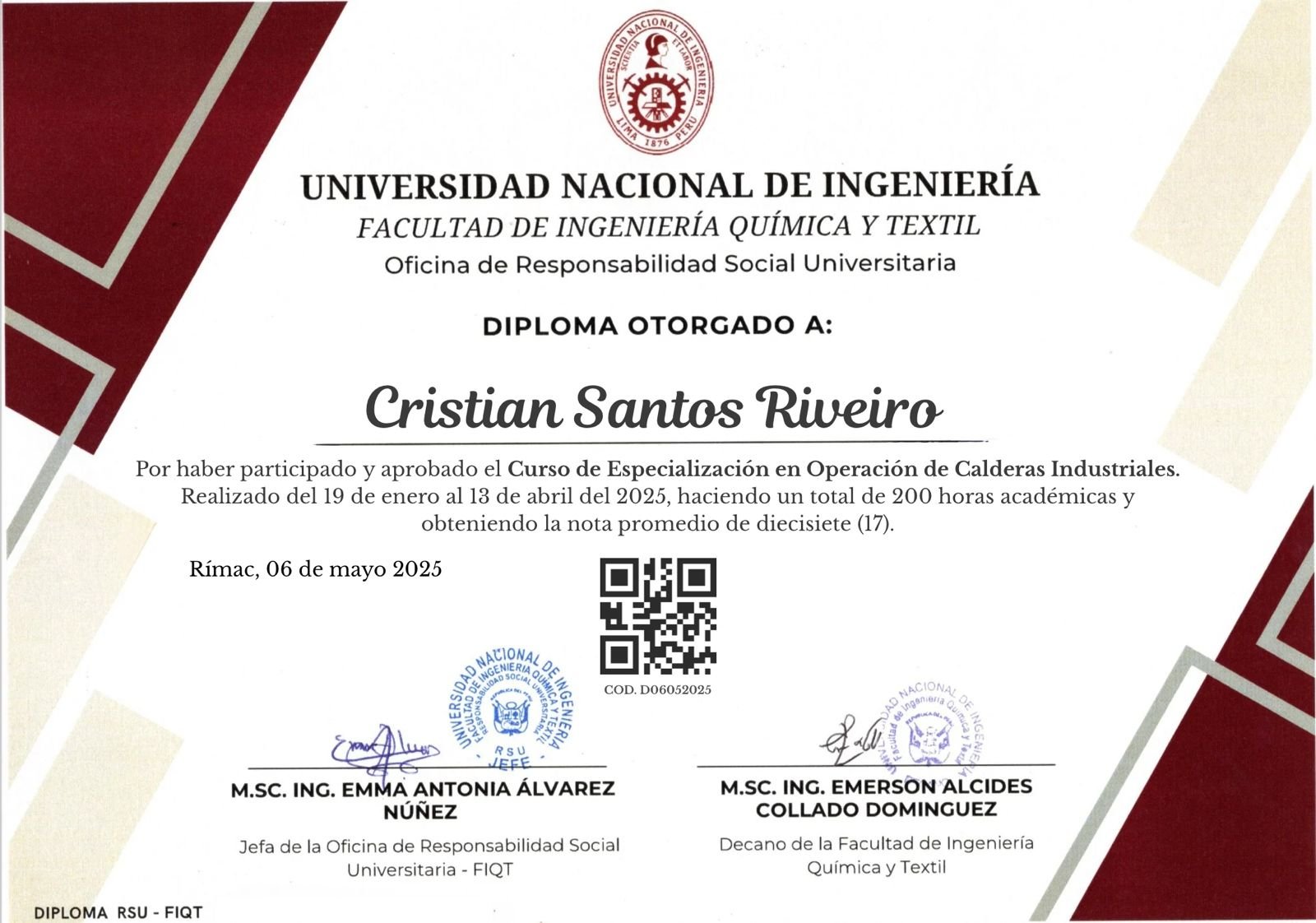 Todos nuestros cursos y especializaciones estan certificados por la Facultad de Ingeniería Quimica y Textil de la Universidad Nacional de Ingeniería - UNI que cuenta con licenciamiento de la SUNEDU.